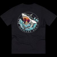 This staple tee wears like a story inked on skin — a bold tattoo-style shark breaking the surface, caught mid-glide. Lightweight but sturdy, the shirt sits comfortably on shoulders and moves with you, the graphic holding its edge like a well-worn flash piece. Picture low tide mornings and boardwalks, or late-night sessions talking shop under neon signs — this tee slips into that life and keeps the energy honest. The design reads confident, a little dangerous, and unmistakably marine; it speaks to collectors of tattoo art, surfers who respect the sea’s quiet power, and anyone who likes their graphics with attitude. Let it be the shirt you reach for when you want to feel anchored and sharp, whether you’re out chasing waves, swapping stories at a pier, or layering up for a casual meet-up.