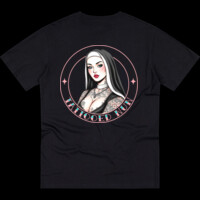 A soft, lived-in tee that carries the bold lines of traditional tattoo art into everyday wear. Wear it under a denim jacket on city streets or layered for cooler evenings at a neighborhood show. This shirt settles into your rotation — comfortable, familiar, and a little rebellious. It speaks to people who collect stories in ink and style, those who love vintage tattoo aesthetics and want that same timeless mood in their wardrobe. For album nights, late coffee runs, or wandering through flea markets, this tee brings that subdued, confident energy without shouting for attention.