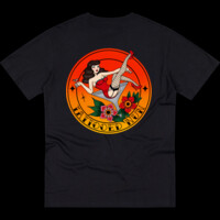 A bold, vintage-inspired tee that channels the grit and glam of classic pinup and old-school tattoo culture. This Tee reads like a flash sheet brought to life—stark lines, limited color palette, and a rebellious edge. Wear it to nights at the dive bar, to tattoo appointments, or on slow afternoons when you want to feel like you stepped out of a noir photo: a little dangerous, a little playful, and entirely unapologetic. It’s for people who collect stories, not trends—who prefer their style with attitude and history.