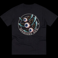 This tee wears like a page from a vintage flash sheet. Bold, traditional tattoo motifs — flying eyeballs and crisp linework — sit center stage, ready to start conversations. It’s made for people who collect small rebellions in their wardrobe: folks who love late-night ink sessions, bike rides under city lights, and swapping stories at neighborhood bars. Throw it on with battered jeans or under an open flannel and the shirt becomes part of your routine — an emblem of grit and humor that ages well.