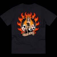This tee carries a nod to old-school luck and daring nights at the table. The design channels traditional tattoo pinup art — bold linework, a confident Lady Luck, and vintage gambling motifs — for a look that's both nostalgic and rebellious. It settles into everyday life easily: worn under a leather jacket for a night out, layered with a cardigan for a retro-casual day, or pulled on after a long shift to remind the wearer of games played and chances taken. It speaks to people who love heritage flash art, smoky poker rooms, and items that feel hand-picked rather than mass-produced. Short, confident sentences. Faint rumble of dice and the warmth of lamplight. This tee isn't shouting; it’s the quiet nod between friends at the end of a long night.